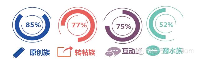 在我们的调查中,潜水族是朋友圈中的最大族群,原创族则是一个相对小众的族群。这或许和国人的沉默文化有一定的关系,人们习惯做沉默的大多数。